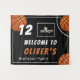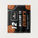 Welcome Basketball Sports Photo Birthday Party Tapestry. The design has basketball balls on a black background. Add your name, age and photo. Great backdrop for a basketball theme birthday party.
