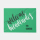 Welcome and Bienvenidos in trendy script to say welcome in English and Spanish, en Español. Change the background colour if you like, and edit the name text field. Welcome in black and Bienvenidos in white go well with any bright colour background.
