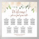This watercolor floral 9 table wedding seating chart has space for 90 guests with 10 seats per table. It features a rustic boho chic design with hand painted roses, flowers, and blossoms in shades of champagne blush and pale peach, surrounded by eucalyptus leaves and greenery. The elegant script calligraphy title reads: Welcome! Please find your table and there is space for the names of the couple and wedding date at the bottom. Wonderful way to beauty, elegance, and charm to your wedding reception, while making it easy for your guests to find their seats.