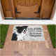 Welcome to the "Your Family Name" Home, or change to the cottage. A dog themed welcome mat for the family who loves their dog as part of their family. The design features a gorgeous Border Collie dog. Personalise your family name. "Beware of Humans"