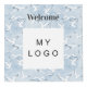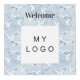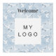 For hotel rooms, restaurant tables, rental properties. Personalise and add your business logo, and space for two QR codes. Blue ocean or sky decorated with sea gulls as background, Black text.