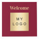 Welcome business logo QR codes burgundy info table Cube