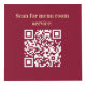 For hotel rooms, restaurant tables, rental properties. Personalise and add your business logo, and space for 4 QR codes. Burgundy background, yellow text.