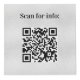 For hotel rooms, restaurant tables, rental properties. Personalise and add your business logo, and space for 4 QR codes. A faux silver looking background, black text.