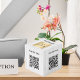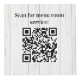 For hotel rooms, restaurant tables, rental cabins. Personalise and add your business logo, and space for 4 QR codes. White, rustic wood print as background, black text.