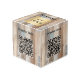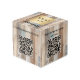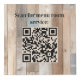 For hotel rooms, restaurant tables, rental cabins. Personalise and add your business logo, and space for 4 QR codes. Beige rustic driftwood print as background, black text.