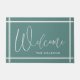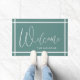 Welcome Calligraphy Script Last Name Turquoise Doormat