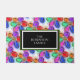 The (insert Last Name) Family is written in white typography against black background. Green white geometric framed area. Pretty colourful artsy flower pattern with paint and watercolors in red, orange, green, pink, blue, purple. Small green geometric circle shapes against white background. Orignal Artwork by TamiraZDesigns.