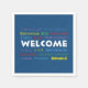 A fun and bright design that says Welcome in many languages like Japanese, English and Spanish!