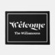 Design features Welcome in beautiful white calligraphy script. Customise one line of text to include your family name or address in a coordinating font. Great housewarming gift! Background colour easily changed to colour of your choice in the Zazzle design tool section!
