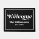 Design features Welcome in beautiful white calligraphy script. Customise one line of text to include your family name or address in a coordinating font. Personalise second line of text with year established. Great housewarming gift! Background colour easily changed to colour of your choice in the Zazzle design tool section!