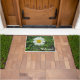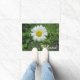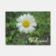 A lovely wild daisy with a raindrop on it with the word "Welcome"