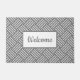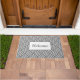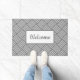 This welcome doormat is shown in a putty grey colour with a stripes print design.