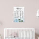 This gorgeous wedding seating chart features a photo of a long-stemmed pale dusty blue or powder blue coloured rose lying on its side reflecting in a pool of water with waves and ripples. The main title reads "Welcome!" with subtitle reading "please find your table" in elegant lacy script calligraphy. There is space for the up to 200 names with the names of the couple and wedding date below. Wonderful way to help your guests find their tables while making your reception more beautiful.