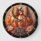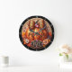 This stunning wall clock features a large orange pumpkin adorned with a stylish leopard print bow and sparkling jewels. Surrounded by vibrant fall flowers and leaves, a "WELCOME FALL" sign is prominently displayed. This elegant clock is perfect for adding a touch of autumn charm and seasonal festivity to any home decor. Edit colour of the clock numbers in the Design tool to your favored colours.