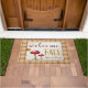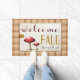 Add a touch of fall with our door mat adorned with "Welcome Fall" in scripted font on an orange plaid and wood print background with cute fall mushrooms and leaves. Add your name or message. View all of our holiday decor in our Zazzle store!