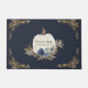 "Welcome Family Fall Pumpkin Foliage Blue Floral Front Door Mat." Welcome your family and friends with this lovely and elegant, fall foliage in navy and dusty blue floral design. A contrasting white pumpkin is set off by the rich dark navy quilted pattern background. The artwork was painted in watercolor by internationally licensed artist and designer, Audrey Jeanne Roberts, copyright.