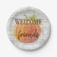 Welcome Friends Pumpkin On Weathered Wood Planks Paper Plate