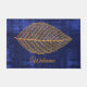 Welcome Mat Gold Filigree Leaf on Navy/cobalt Blue distressed satin background