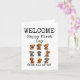 Welcome, happy first day, from all of us, cute puppies on a card.