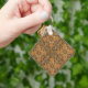 The key chain is made of metal and really sturdy. The flower design is really cheerful. The logo and colors are clear and crisp!