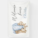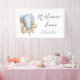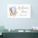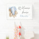 A welcome home baby boy banner. The design features a watercolor illustration of a baby boy in a cute blue baby grow. The black typography text reads welcome home, followed by the baby's name in blue.