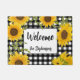 Welcome Home Sunflowers Plaid Custom Name Doormat