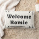 Lettering ‘Welcome Homie’ framed by four lines. Black and white, minimalist, yet elegant, monochrome style.