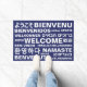 Welcome in many different languages navy blue and white elegant modern fun Doormat