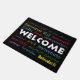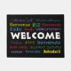 Do you like fun home accessories? Do you like interesting welcome mats? A fun design done in black, red, blue, green and purple of the word language in many foreign languages against a black background. English, Spanish and Dutch are just some of the examples on this cool door mat.