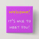 This square button design features the messages "Welcome!" and "IT’S NICE TO MEET YOU!". It could perhaps be used as a friendly way to greet people at a conference, gathering, or some other event.