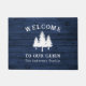 Welcome Lake House Rustic Trees Blue Wood Print Doormat