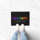 Welcome: a welcoming inclusive message written in rainbow colours. An original take on the rainbow flag!