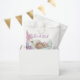 Welcome Little Baby Girl Hershey®'s Kisses® Featuring a sweet, hand-drawn illustration of a baby girl peacefully sleeping on a soft, fluffy cloud, this design is framed by a delicate border of watercolor flowers in shades of lavender, purple, and soft pink.