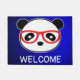 Panda Welcome Mat Dome Decor. Cute Panda Bear home mat with Red Glasses. Funny Panda Bear welcome mat. Customise your text, colour, style on your Panda Bear Welcome Mat to match your home decor.