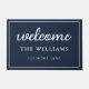 Welcome Navy Blue Family Name Personalised Doormat