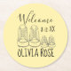 WELCOME New Arrival Baby Shoes Shower Yellow Round Paper Coaster