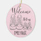Ornament features an original marker illustration of a pair of big shoes and baby shoes, with WELCOME in a pretty font. Ideal for a baby shower, baptism or christening. Just personalise with your information.