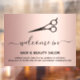 A rose gold gradient background. With the text: Welcome in, in black written with a trendy hand lettered style script with swashes. Personalise and add your opening hours, website.