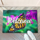 “Welcome.” A close-up photo of a delicate, orange and black monarch butterfly resting on a bright magenta flower. Explore thoughts of warm, sunny days as you enhance your entryway with this stunning, colourful photography doormat. Makes a great gift for a special friend, or even yourself!