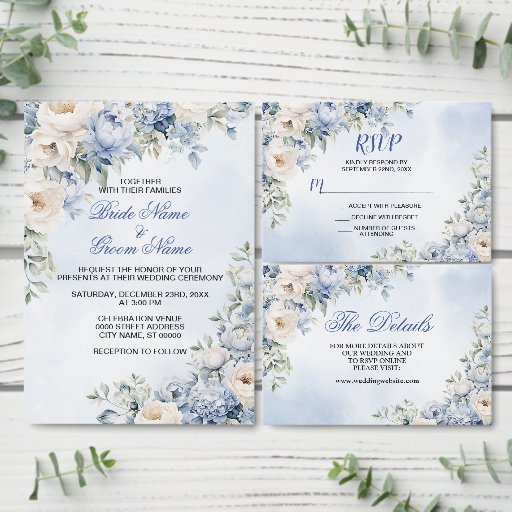 Welcome Party Dusty Blue Watercolor Ivory Flowers Bunting