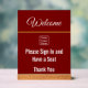 Welcome Please Sign In and Logo Deep Red Acrylic