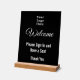 Welcome your visitors with this black acrylic sign featuring your organisation's logo. The display text can be edited to show your desired text. Display text reads: Welcome Please sign in and have a seat Thank You