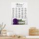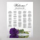 This beautiful wedding seating chart showcases a solitary long-stemmed rose in a captivating deep royal purple hue, delicately resting on its side and casting a reflection in a serene pool of water. The title reads "Welcome - please find your table," with the names of the couple and the wedding date positioned below. The chart provides ample room for up to 200 names, arranged in alphabetical order for effortless navigation by your guests. With its tasteful and refined aesthetics, this design exudes elegance, romance, sophistication, and a touch of chic, adding an air of charm and poise to your wedding celebration.