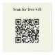 For hotel rooms, restaurant tables, rental properties. Personalise and add your business logo, and space for 4 QR codes. Ivory coloured background. Black text.