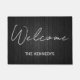 Welcome Script Black & White Custom Family Name Doormat