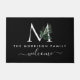 Welcome script monogrammed greenery black doormat