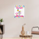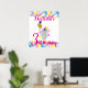 Cute Birthday elephant holding balloons on a multicolored balloon background this design can be personalised with name and age of the birthday child