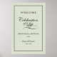 Welcome sign poster for Celebration of Life Memorial Service. Customise by editing the name and date text fields. Can be framed or mounted to a board or door to welcome guests to a memorial event. The design is elegant and understated with an emphasis on "Celebration of Life." The background colour can be changed if you like - click customise and choose a new colour.