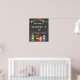 Robots Birthday party welcome sign personalised with name child or text, Robots illustration in bright yellow, red, green and blue colour.
